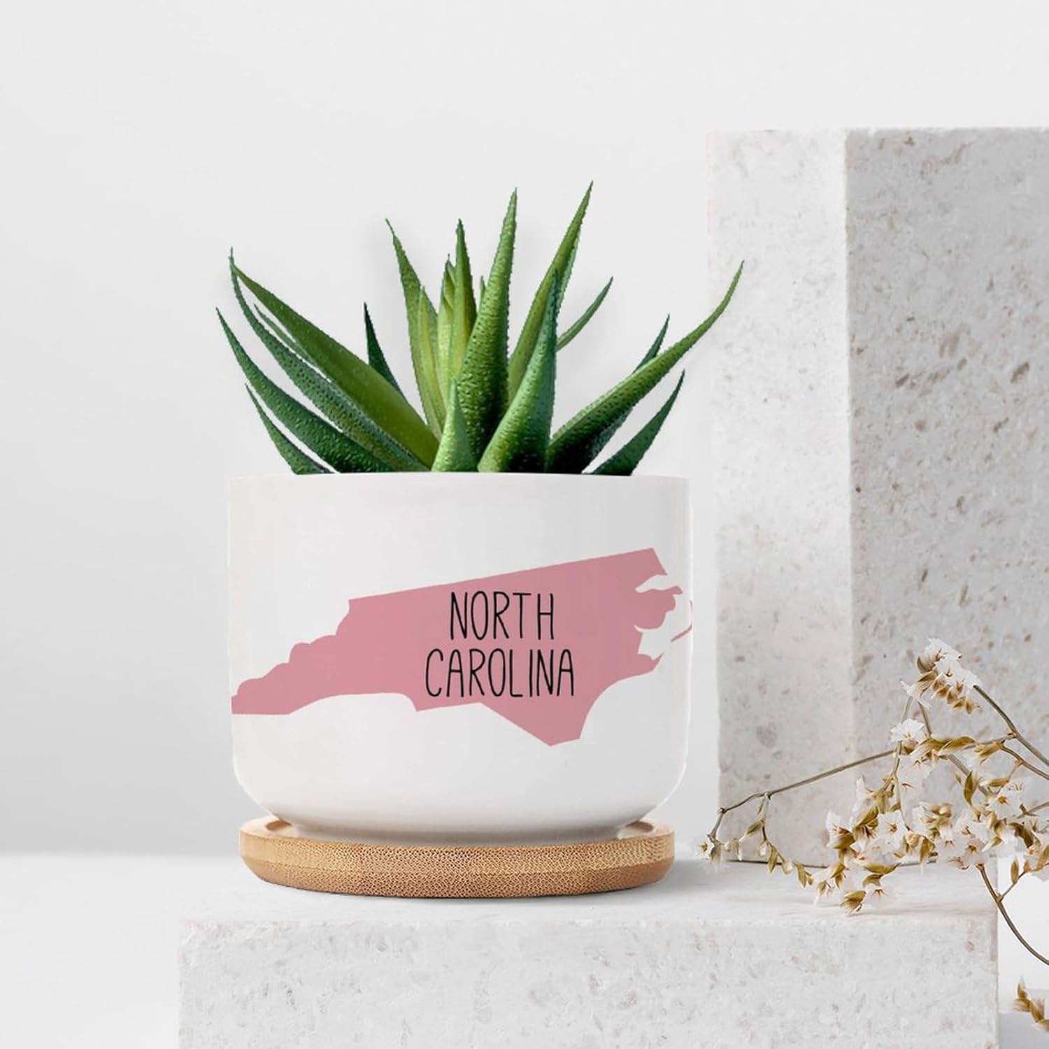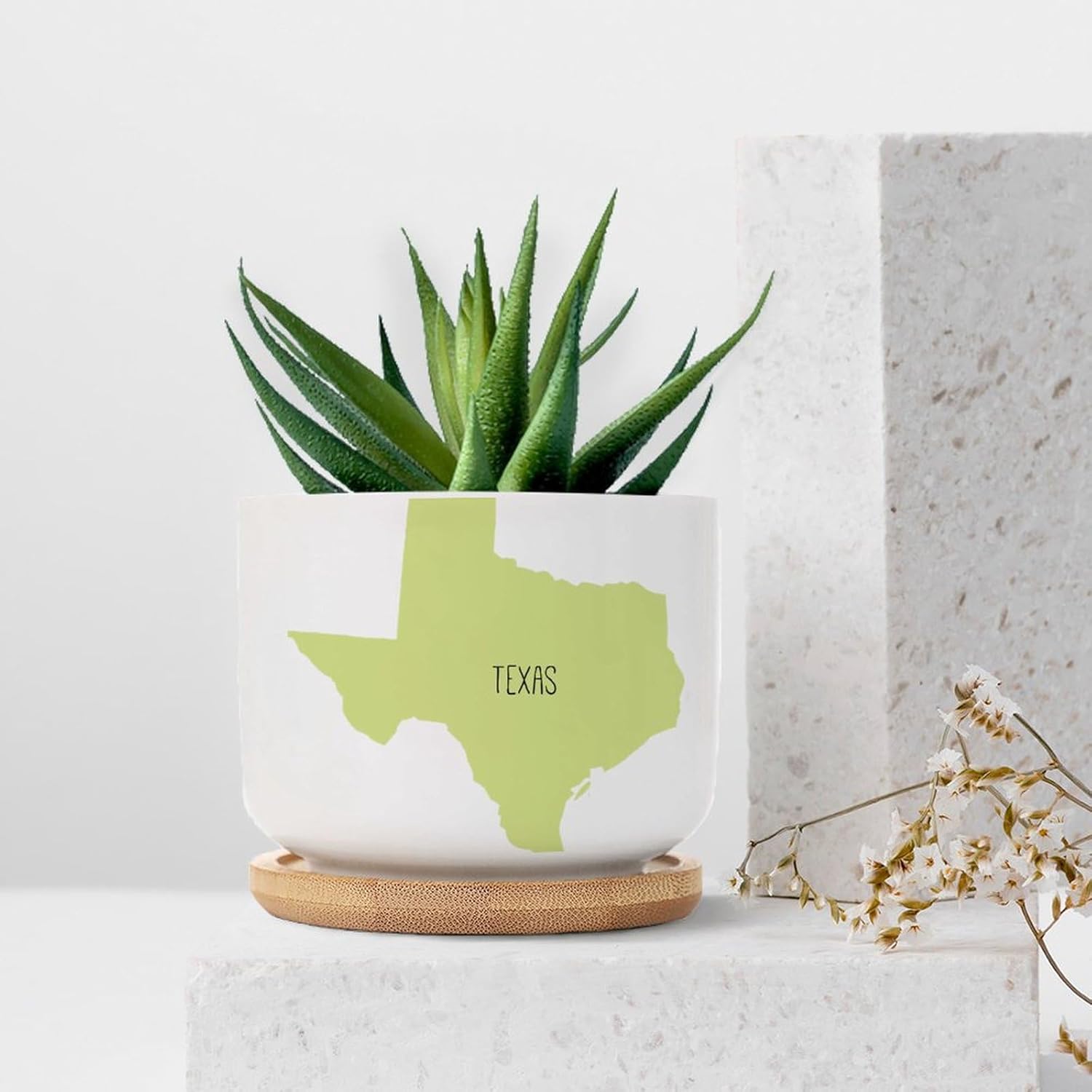 "Features: Main material: ceramic Main color: white Practical garden helper Bamboo Tray Bamboo tray holds the planter to keep clean. Drainage Hole The planter pot comes with drainage hole to allow water drain and keep moisture and air through. Ideal gifts: You can give plant pots with drainage holes and saucers to your family, relatives on Christmas, Valentine's Day, birthday, housewarming, anniversary, Mother's Day as ideal gifts, which can show your care for them. Package includes: Ceramic succulent pots with drainage holes*PLANTS NOT INCLUDED.* Bamboo trays