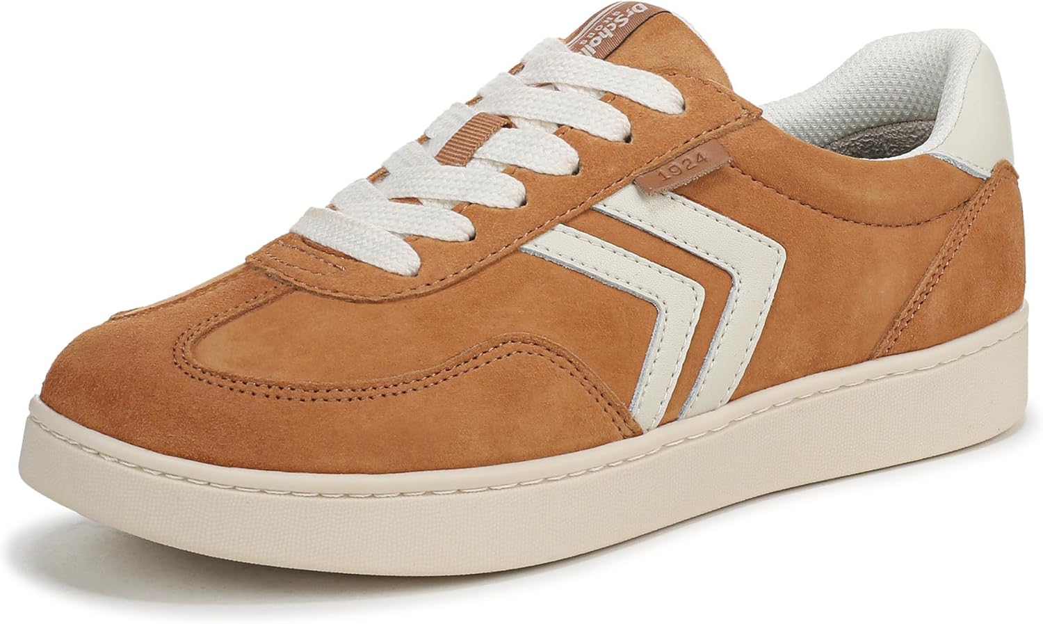 Low profile sneakers for women with high-impact details. SUSTAINABLY CRAFTED: Fabric lining and topcloth partially made from recycled plastic bottles; partially recycled toe box and heel counter. MATERIALS: Suede and leather upper responsibly sourced through Leather Working Group-certified tanneries. FIT: Lace up closure for secure fit. SUSTAINABLE COMFORT: Anti-odor Insole Technology with anatomical cushioning, comfort, & arch support that uses 15% cushy plant-based BLOOM® foam insole. MOVEMENT: Lightweight, flexible construction moves with you. STYLE: Retro-inspired womens sneakers with round toe, padded collar, stitch details, chevron accents, and 1 inch rubber gum sole. CONSCIOUSLY PACKAGED: This style is shipped in an environmentally preferred 1-piece box made with primarily recycled materials that can be recycled & soy-based inks. A pop color palette, trending gum sole, and our revolutionary comfort create womens walking shoes for your daily rotation.