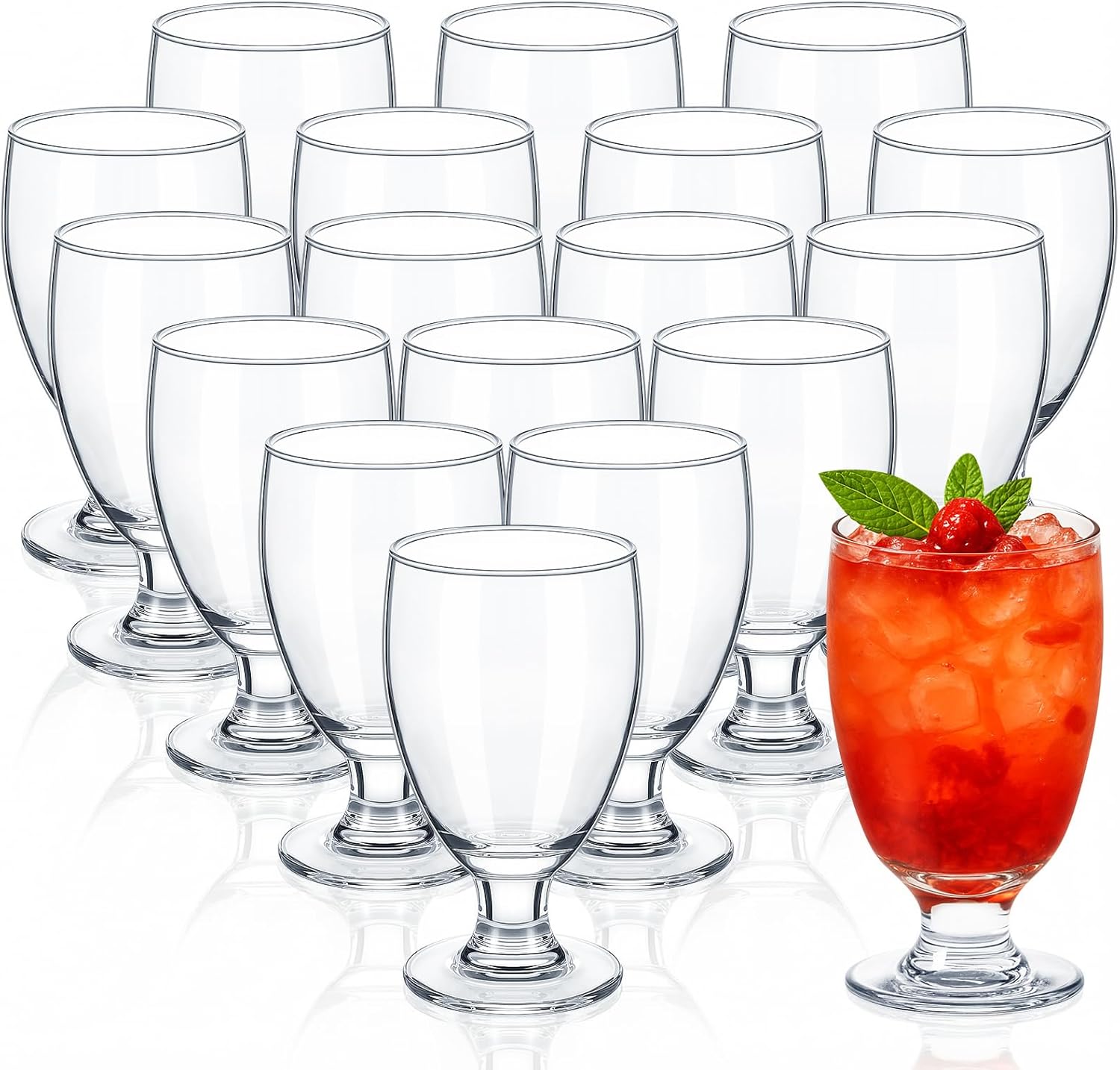 Features: Clear and elegant: These water goblet is stemmed and clear, with a smooth surface and a stable base, easy for you to garb, which can also demonstrate your elegant taste. Applicable occasions: You can apply the short wine glasses for swimming pool parties, camping, picnic, family gatherings, New Year's parties, Christmas parties, Thanksgiving parties, and other activities according to your favors. Specifications: Material: crystal glass Color: clear Size: approx. 5.28 inches/ 13.4 cm high, about 2.76 inches/ 7 cm in mouth width Capacity: about 10.5 oz/ 315 ml Package includes: 12 x Stemmed glasses Notes: Manual measurement, please allow slight errors on size. The color may exist a slight difference due to different screen displays.