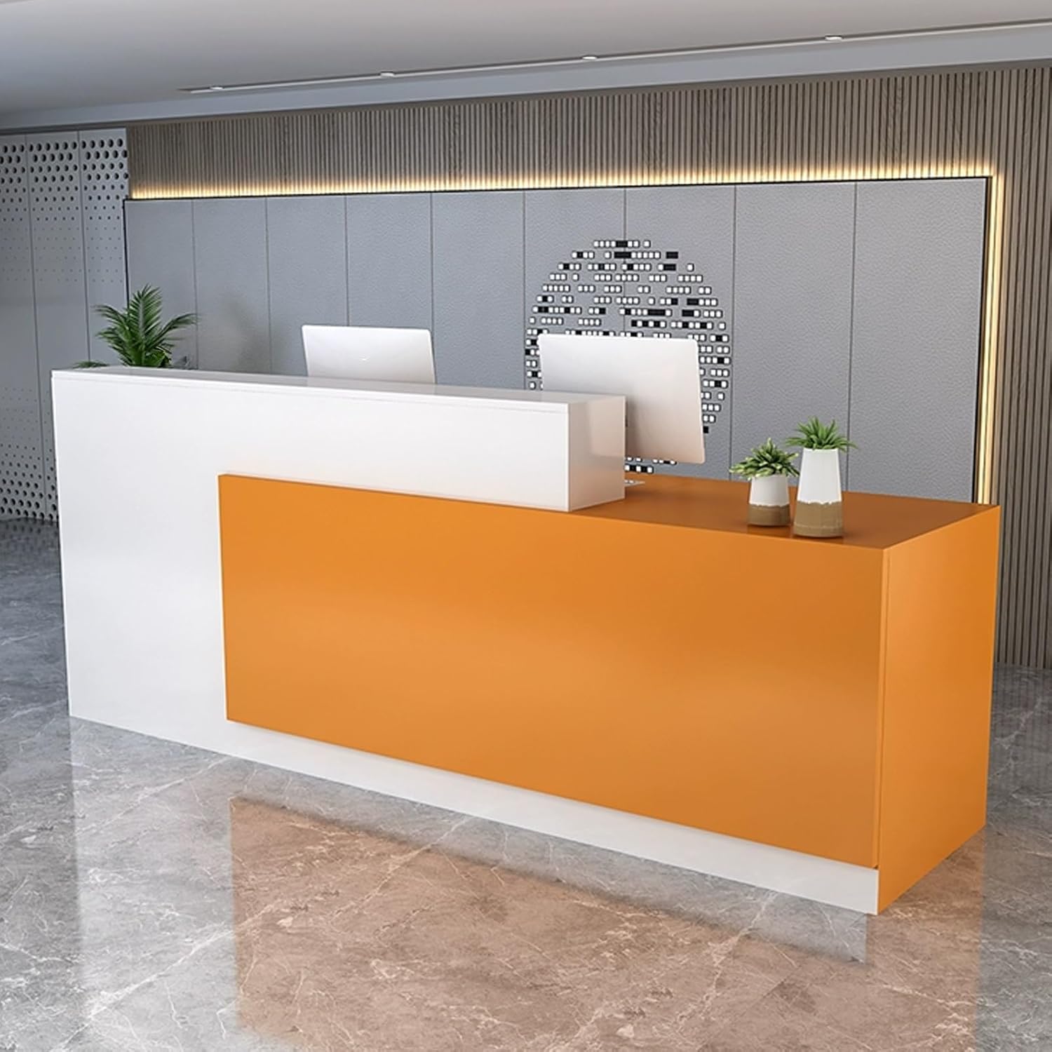 Maximize storage and style with our versatile YUGXTH desk reception counterThe widened double-layer storage table can be used to store various daily work itemsThe baffle reinforcement design can effectively partition the office and reinforce the overall structure to prevent it from shakingThe locked drawer and silent keyboard track make office life convenient and fastSpecificationsProduct Name: Cash RegisterColor: Natural-Left, Natural-Right, Gray-Left, Gray-Right, Orange-Left, Orange-Right, Yellow-Left, Yellow-Right, Green-Left, Green-Right, Blue-Left, Blue-Right, White-Left, White-RightMaterial: E1 boardLength: 120cm/47.2in, 140cm/55.1inWidth: 60cm/23.6inHeight: 100cm/39.3inProduct Style: Modern and SimpleApplicable Scenarios: Clothing Stores, Beauty Salons, etc.Product Includes: 1*Reception DeskAttention.1. Due to differences between monitors, there may be slight color difference.2. Due to the measurement method, measurement method and other factors, there may be slight error.