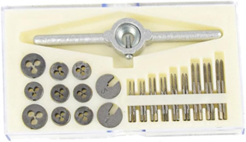 Package List 1 x 31PCS Mini Metric Tap and Die Set with Thread Cutters Round Die Wrench Characteristics - Applicable scope: manual. - Size: 15.5 x 8.5 x 1.5cm. - Package includes: - Material: HSS. 9 x Diels / .1 / .2 / .4 / .6 / .8 / / M2.2 2.5; round die wrench 2 x tap total length 25mm; metric tap 2 x .1 Taps total length 25mm; thread cutter - Supplied in a blow molded tray, for easy storage and transporting round die set. 2 x M2.2 Taps total length 35mm; wrench die socket handle tool 1 internal mold holder/reducer total length 16mm; - ColorAssorted Color 2 x .8 Taps total length 30mm; 2 x .2 Tap total length 28mm; 2 x tap total length 35mm; A mold base full length 125mm; - If you are cutting loads of or using tap and dies regularly you need HSS. 2 x .4 Taps total length 28mm; - for model making / watchmaking or small engineering work. 2 x M2.5 Taps total length 40mm; - Small and compact. HSS for strength and durability. Works fine. - For use with metal and plastic 2 tap holders. 2 x .6 tap total length 30mm;Goods Informationmetric and Die Set (Metric) is the all-purpose set for your garage or shop.thread cutter With proper technique and the right , these taps and dies will cut mild carbon and alloy steel, cast iron, aluminum, brass and bronze.wrench die socket handle tool They are known for their ability to start easily, either cutting new material or chasing lightly damaged threads.round die wrench These tapered plug taps and dies are the most commonly used style and are for most hand threading