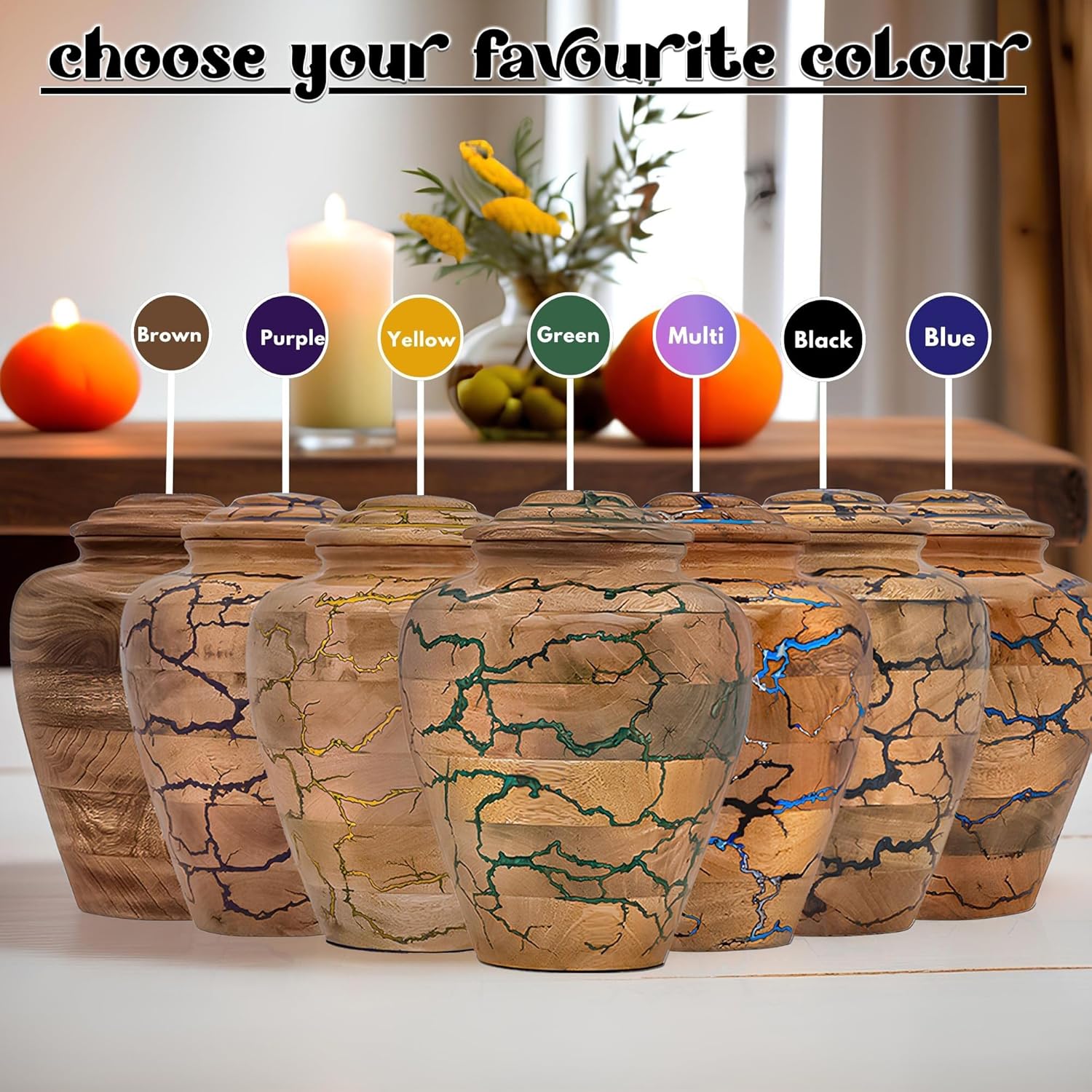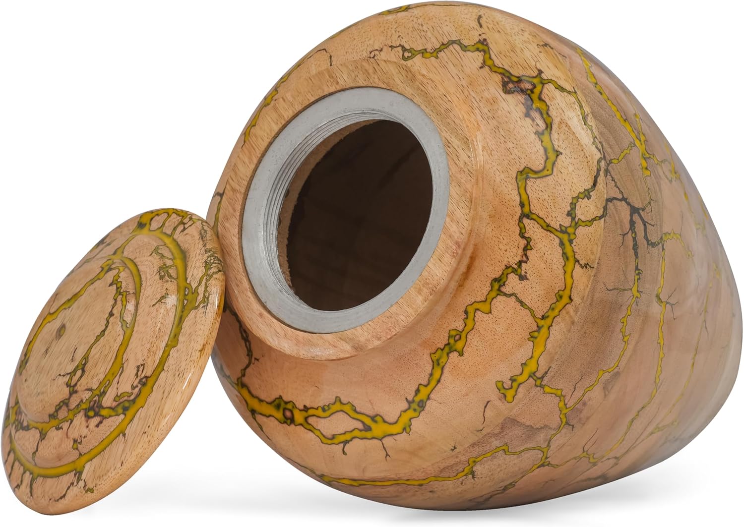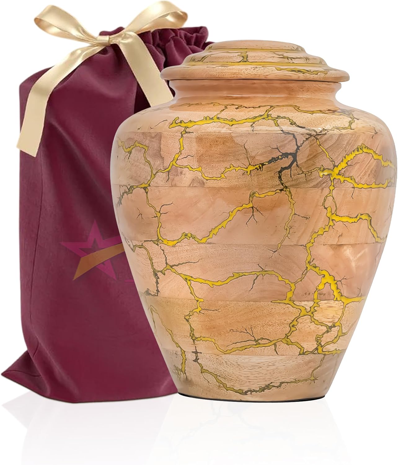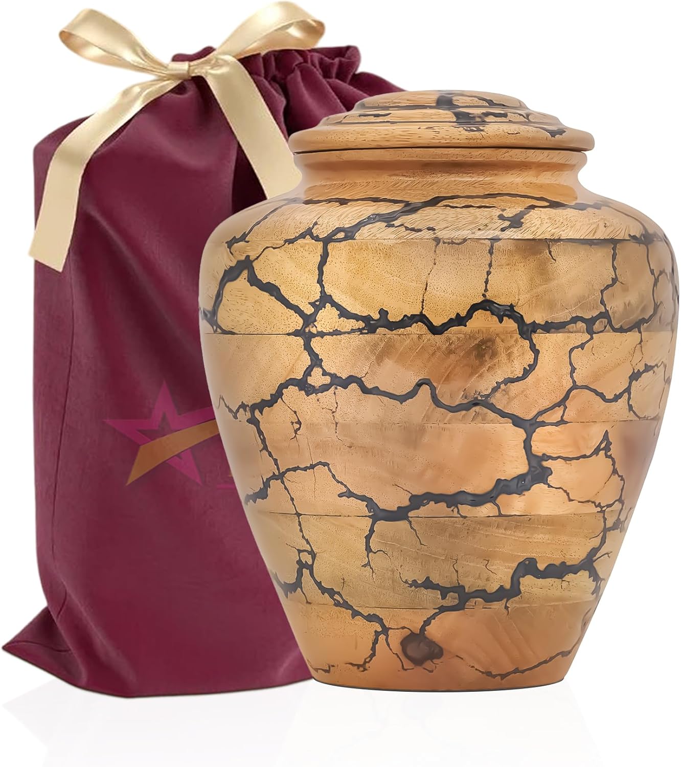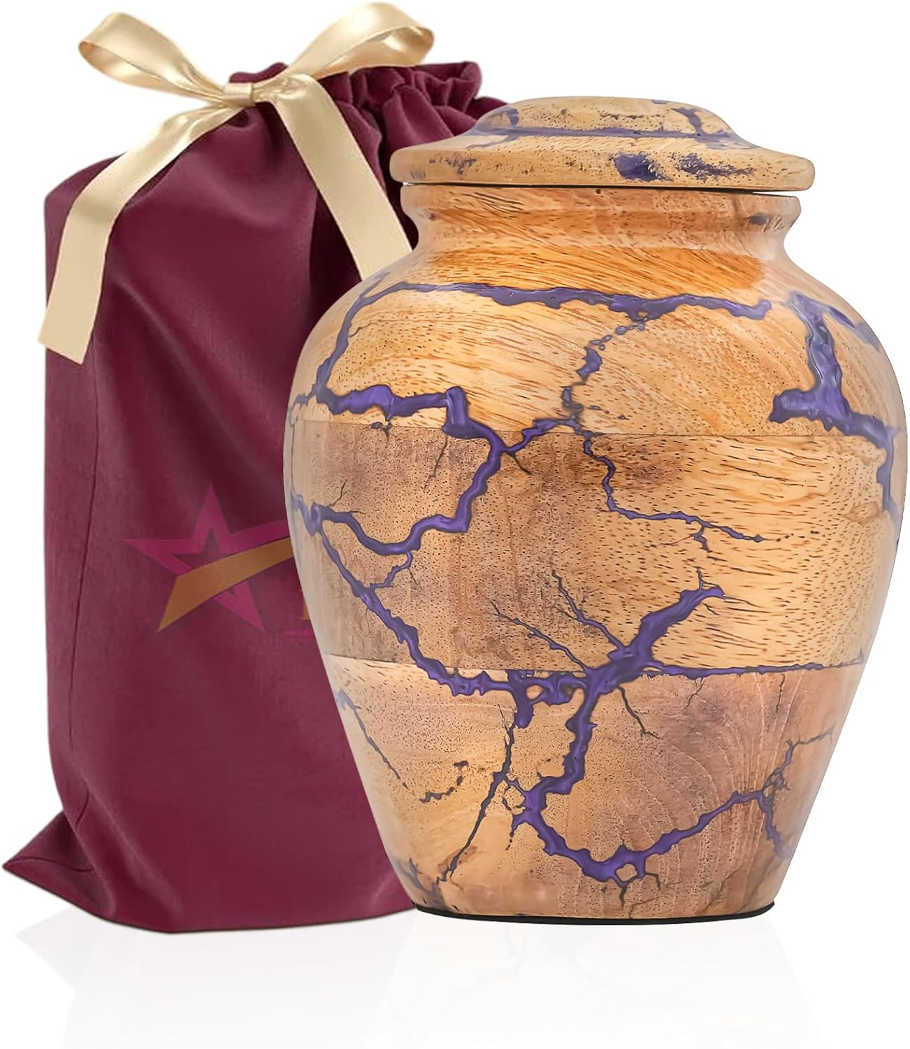 Preserve the memory of your loved one with this Handmade Wooden Cremation Urn for Adult Ashes by Bhartiya Handicrafts. Expertly crafted from premium solid mango wood with a striking green epoxy inlay, this urn symbolizes eternal love, peace, and dignity. Each urn is carefully handmade, ensuring a unique design that serves as both a memorial and a decorative tribute. This large funeral urn offers a generous capacity of 225 cubic inches, suitable for securely holding the ashes of an adult weighing up to 225 lbs before cremation. Its elegant size of 10"L x 8"W x 2"H makes it ideal for display on a mantle, at home memorials, in funeral services, or in a columbarium niche. The fitted lid provides a secure seal, keeping ashes safe, while the polished finish highlights the natural wood grain and adds durability. Each urn includes a soft velvet storage bag for respectful transport, storage, or ceremonial presentation. Handcrafted by Bhartiya Handicrafts, this wooden memorial urn combines traditional artistry with modern resin craftsmanship, offering a timeless and meaningful resting place for your loved one’s ashes. Choose this elegant wooden cremation urn for adult ashes as a lasting symbol of remembrance, love, and dignity. Perfect as a funeral urn, burial urn, or decorative memorial urn, it honors your loved one with the care they deserve.